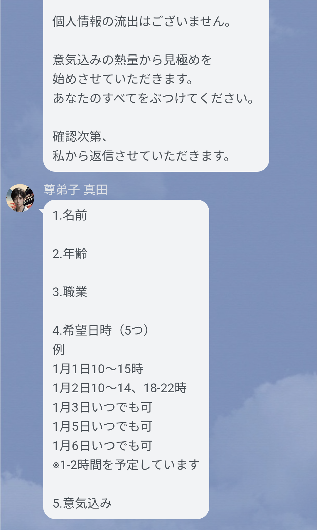 私の7人弟子の1人にあたる「真田」が見極めます。
